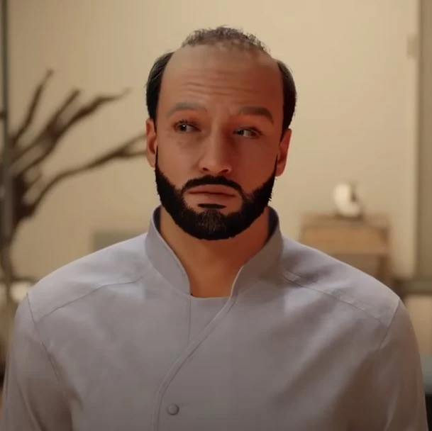Dad wears the Formal Slack Suit. His hairstyle and beard will always remain the same, but his other features will change, depending on how the player has designed their character.