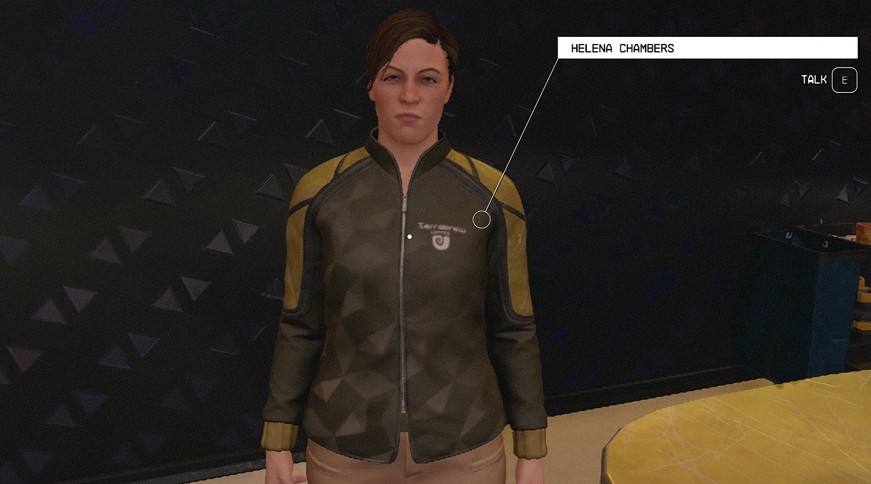 The administrator in charge of the station at the time of the attack, Helena has disgraced herself by failing to initiate the proper evacuation procedures and is stripped of her title of administrator. Following her arrival, she is assigned to work in the Spaceport District's Terrabrew Coffee, although she is critical of the way operations are run.