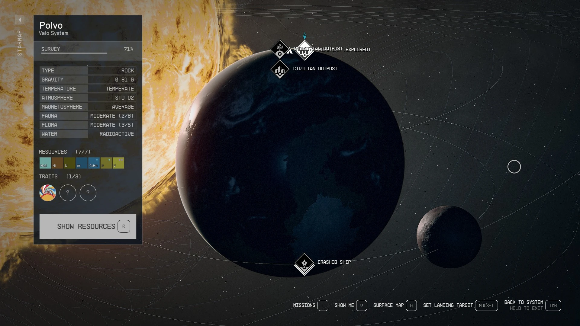 Polvo has mineable water, nickel, uranium, argon, vanadium, iridium and benzene.