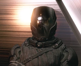 The Hunter is a powerful Starborn encountered by the Spacefarer. He is first formally met during High Price to Pay, however he can also be encountered before this mission in other locations throughout the Settled Systems, such as The Viewport in New Atlantis or The Hitching Post in Akila City.