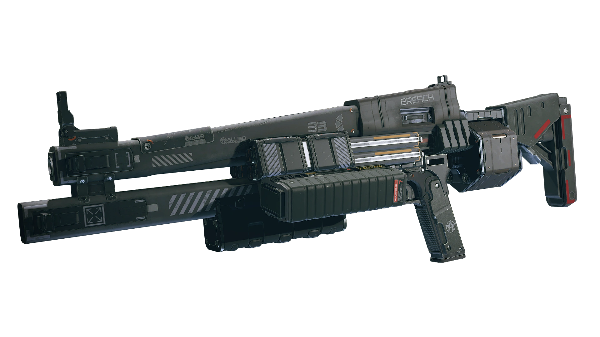 Apart from regular weapons, which come in several qualities, influencing their base damage, there are also Unique weapons which sport a unique name, a predefined set of attachments and effects and, sometimes, a unique paint scheme or other design aspects. Unique weapons sold by traders have a fixed tier. Some unique weapons obtained from missions are leveled, although the tier is not indicated in the name, the characteristics, and price correspond to the higher tiers of the prototype weapon.